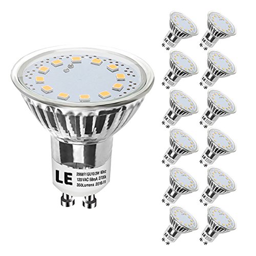 LE GU10 LED Bulbs, 3-Watt (50W Halogen Bulbs Equivalent) Light Bulbs, 350 Lumens, 120° Beam Angle, 2700K Soft Warm White, MR16 LED Light Bulbs, 12-Pack