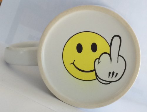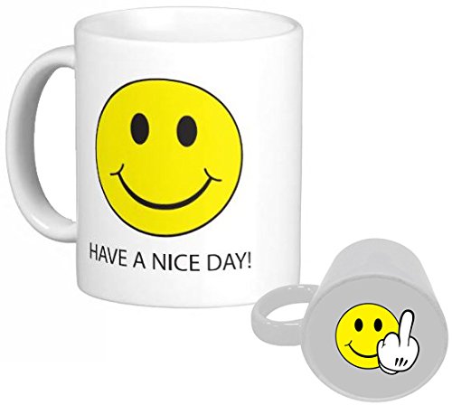 -. Title : Have a Nice Day, Smiley Face - Middle Finger SuP.R.Ise on Bottom 11 Oz Coffee Mug