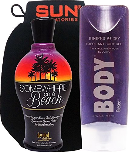 1. Somewhere on a Beach, Indoor Outdoor, Instant Dark Tanning Lotion 12.25 Oz1. Juniper Berry Exfoliating Body Scrub 9 oz1. Body Exfoliation Glove Tan Remover