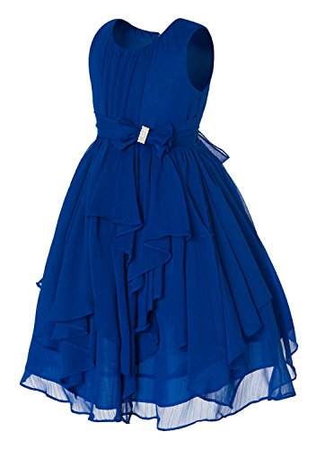 Simple yet elegant looking Yoru Chiffon dress with Asymmetric Ruffled Skirt and Jeweled bow waistline accent.