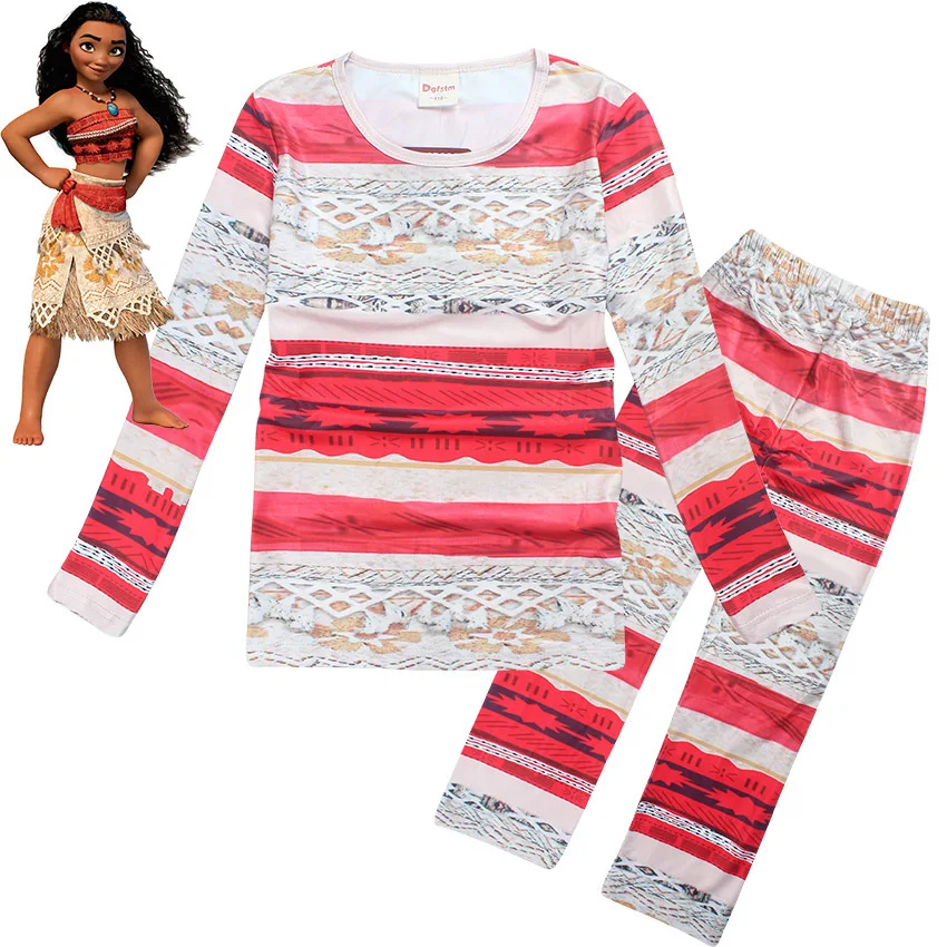 2017 Summer Boys Sleepwear Moana Costume Girls Pajamas Pyjamas Kids Boys Pajamas Long Sleeve T-shirt+Print Shorts Clothing Set