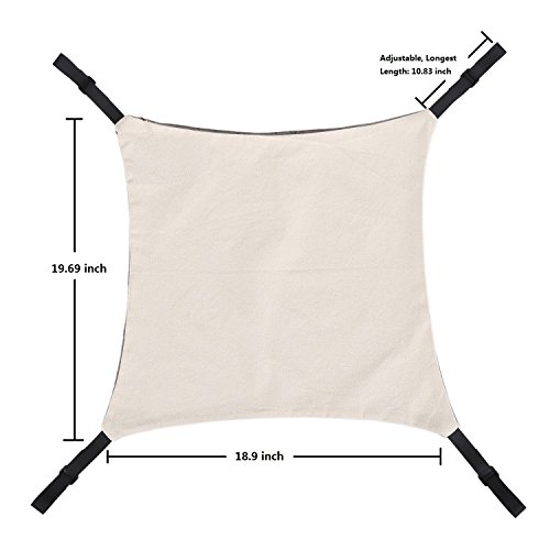 Your cute cats always need a warm space to sleep. But the pet furniture may cost much and it makes your living room unsightly and disorderly. Your options are limited and cleaning around your cat's furnishings is difficult. This space-saving cat hammock your feline will love! You can have a clutter free home and a satisfied cat! Buy your cat hammock today and eliminate that clutter while keeping your furry family member happy! Product Details: 1.Coming with four anti-slip rubber rings and four buckles to add safety and steadiness. The colors of the slip rings are sent at random. 2.Size: L*W: 18.9*19.69 inch. Straps Length: 10.83 inch. 3.The straps are adjustable, and the cat hammock fit for almost all four legged chair or pet cage. 4.This ingenious space-saving Pet Hammock attaches under chairs or tables,you and your cat will both love it. 5.Attaches securely by fully adjustable Velcro and removes easily for storage or travel. CARE INSTRUCTIONS: Machine Wash Cold Lay Flat to Dry Do Not Wring Do Not Bleach Cold Ironing NO Worry Guarantee: Fast response speed. Passionate customer service. 30 days no reason refund. Package: 1 x Cat Hammock 4 x Slip Rings (Random color) 4 x Buckles 0 |