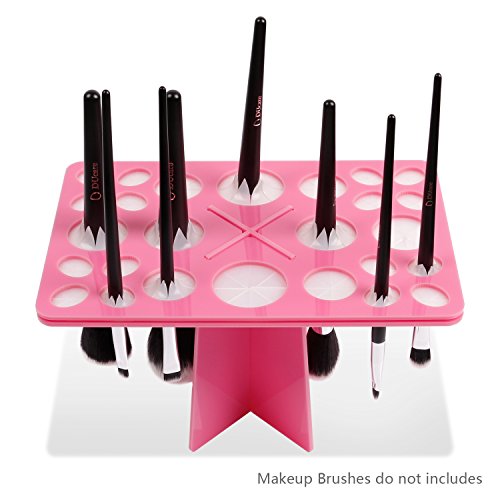 -. Feature : ? 26 Mix Size Makeup Brush Holder;Holds 6 large;4 medium;and 16 small brushes;Help protect the shape of your brushes after washing / ? Foldable holder;steady and easy to use;trapezoidal design;very strong without falling apart and shaking / ? Multi-Using;this Tower is a perfect keeping brushes in the daily using as well as helping to prevent your brush heads from getting misshapen or warped / ? Acrylic and Rubber material;easy for put your brushes in;doesn't hurt your brushes or hands / ? There a protective sticker on the brush holder that you'll need to peel off to reveal the sleek black