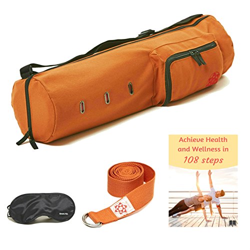YOGA SET INCLUDES ? 1x Large Yoga Bag ? 1x Yoga Strap, 100% cotton, 8ft long to help you with the yoga poses ? 1x Eye Meditation Mask ? 1 Free E-book as Bonus "Achieve Health and Wellness in 108 Steps" for a better understanding of the yoga philosophy. 0