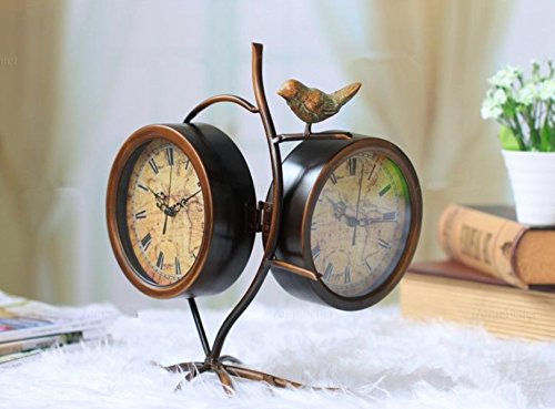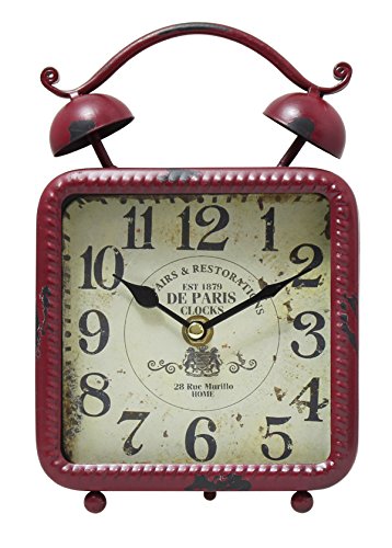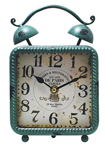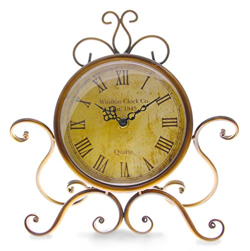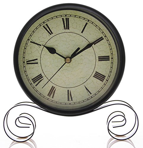 This Vintage tabletop Clock is made with a wooden, glass and iron material that is durable. It has black roman numeral numbers and white face that enables us to see the time clearly. Its cyma and ogee edge style exemplifies its classical look, perfect for those who love classics and antiques. Clock face measures 4.5" X 4.25" with sweep movement and requires two AA battery (not included)Feature