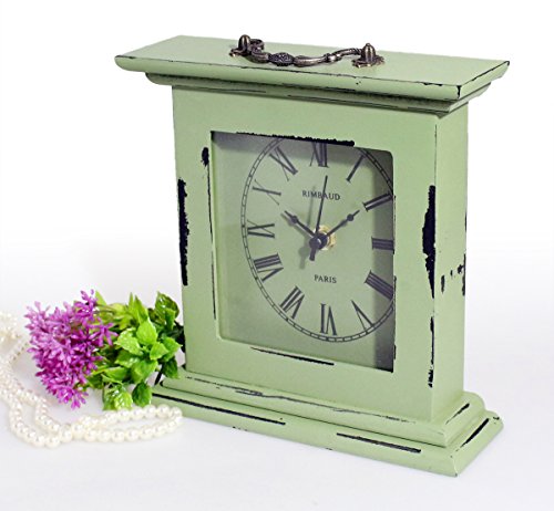 Vintage rustic wooden green table clock