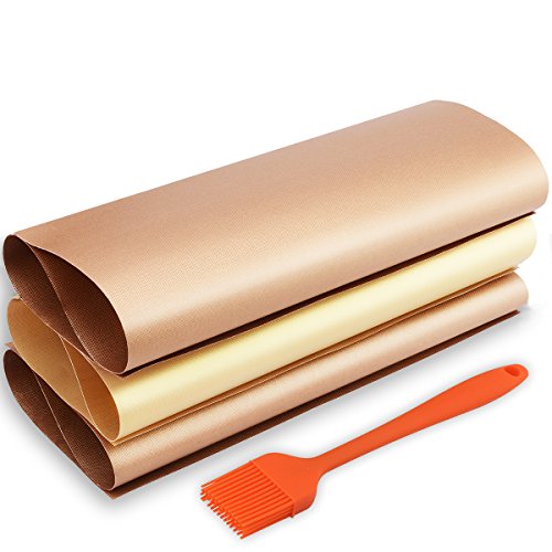 Copper Grill Mat - Chef BBQ Non-stick, Reusable, Heavy Duty and Dishwasher Safe - Works on Gas, Charbroil, Electric Grills Outdoor Cooking FDA Approved PFOA Free (Set of 3 Silicone Grill Brush)