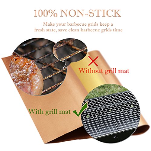 KEEP FLAVORS!- Use our grilling mats to prevent baked oil from dropping into the oven, making the barbecue food zoom and dry, keeping the food\'s nutrition and flavor, everyone could be a super grill-master with these barbecue mats