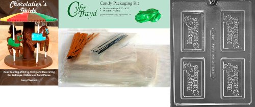 Cybrtrayd Happy Holidays Business Card Chocolate Candy Mold with Chocolatier's Bundle, Includes 50 Cello Bags, 25 Gold and 25 Silver Twist Ties