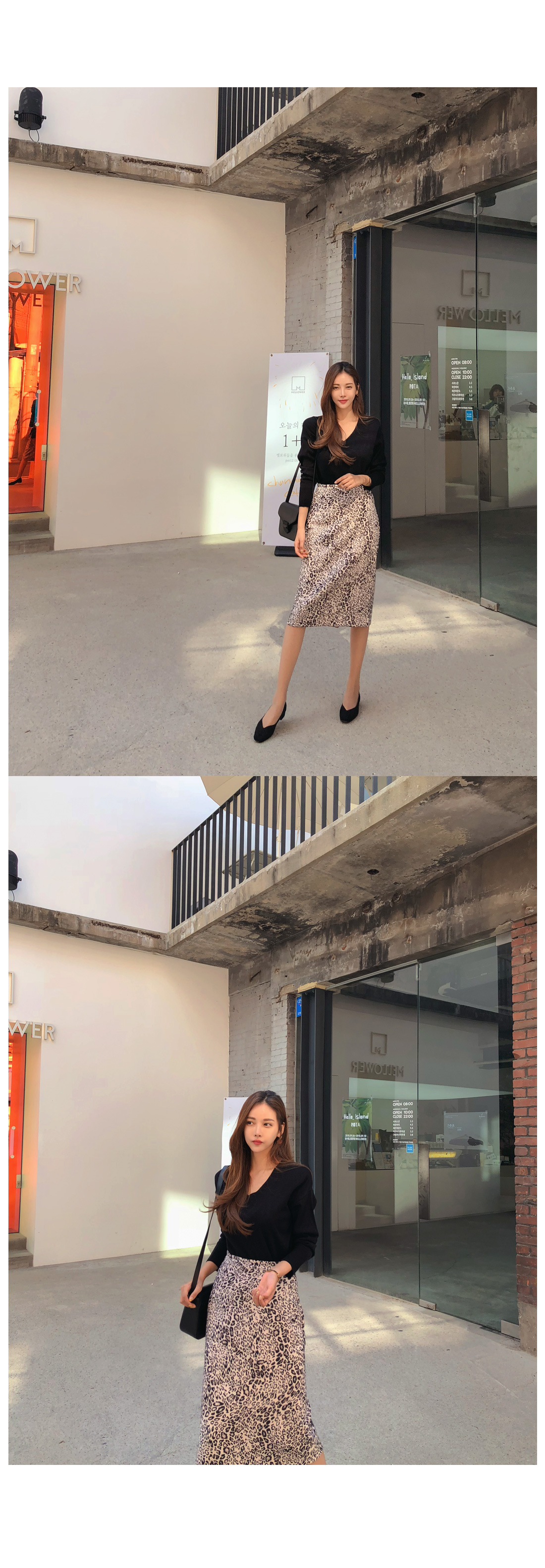 FW시즌 핫한 호피 패턴의 미디 스커트를 소개할게요.