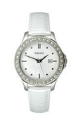 -. Title : Seiko Leather Brushed Silver-Tone Dial Women's Watch #SXDF93