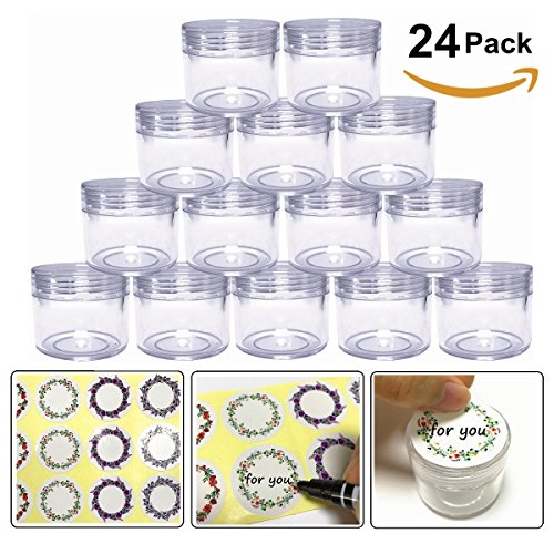 20gram/20ml Round Clear Empty Container Jars with Clear Screw Lids Bulk for Lotions, Lip Balm, Makeup Samples - BPA Free (24 Pack, Clear)