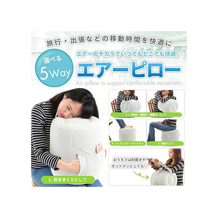 【선택할 수 있는 5way휴대침】안아 베개,팔꿈치 두고, 발치 와(휴식)고, 의자 등 상황에 따라 적절히 사용할 수 있는 여행 편리 상품입니다.트래블 출장 등의 이동 시간의 차내나 기내에서 쾌적하게 보낼 수 있습니다.
