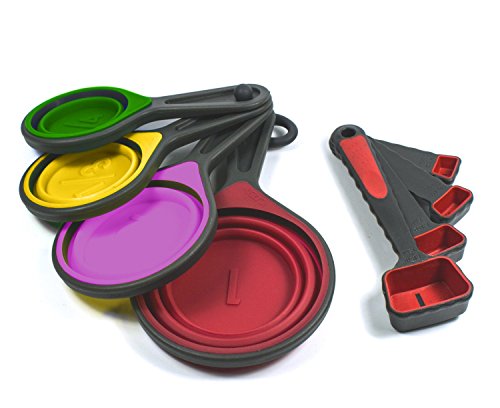 Collapsible Silicone Measuring Cups & Measuring Spoons Set by by Lake Country Products, 8 Piece Set