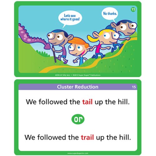 -. Binding : Toy -. Brand : Super Duper® Publications -. EAN : 9781607230724 -. Feature : 100 illustrated cards (3" x 5") depict Minimal Pair words used in silly sentences (e.g., Put some jelly on the bed/bread.) / Includes sturdy storage box, content cards, and game ideas / Educational - Shows children how changing one sound in a word can change the meaning of the entire sentence / Over 30 Super Duper Publications Apps available on the Amazon Appstore for Android / You might also enjoy our "Photo Phonology Minimal Pair" Card Decks - also featured on Amazon -. IsAdultProduct : 0 -. ISBN : 1607230720 -. Label : Super Duper® Publications -. Manufacturer : Super Duper® Publications -. MPN : CRD-67 -. PackageQuantity : 1 -. PartNumber : CRD-67 -. ProductGroup : Toy -. ProductTypeName : TOYS_AND_GAMES -. Publisher : Super Duper® Publications -. Studio : Super Duper® Publications -. Title : Silly Sets: Minimal Pairs for Maximum Progress Card Deck - Super Duper Educational Learning Toy for Kids