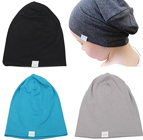 Qandsweet 4 Pack Baby Boy's Solid Hat Cotton Beanies Caps for Toddler Kids 1-5Y (Light Gray Black Blue Dark Gray)