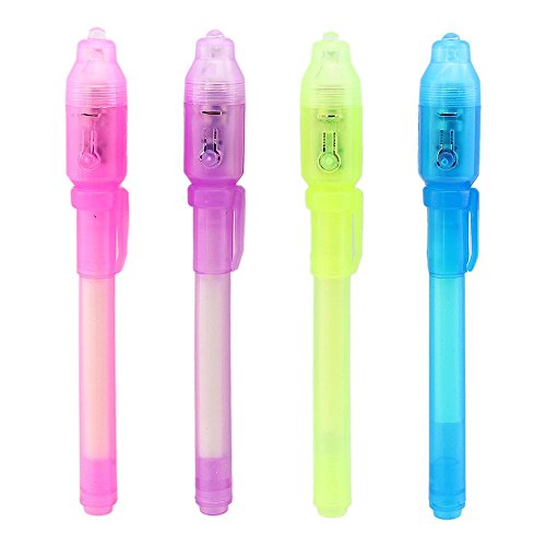 16pcs Invisible Ink Pen and Black Light Combo, 4 Colors Including Red, Blue, Yellow, Purple