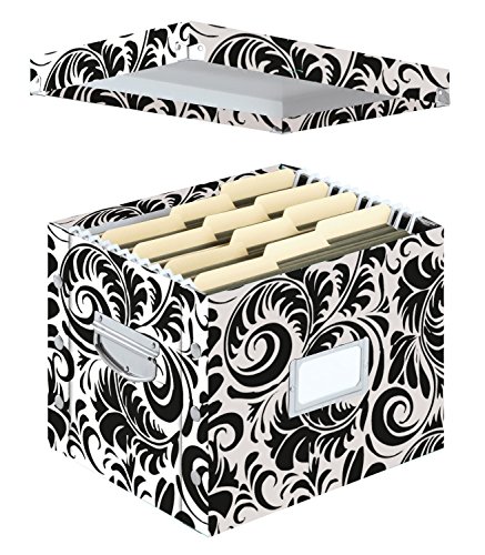 Snap-N-Store Letter Size File Box, 11 x 14 x 1 Inches, Black and White Scroll Design (SNS01836)