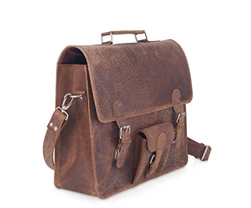 -. Feature : Handcrafted bag made from genuine high quality buffalo leather / Size: 16" (L) x 12" (H) x 5" (W) Distressed Hunter Messenger Bag / Perfect for daily use / storing iPad , mobiles and other accessories, easy access through secure locks underneath the buckles. Removable shoulder strap so the bag can be used as a briefcase / Can be used as Leather messenger bag , iPad bag , leather satchel , leather cross body bag , leather laptop bag , leather briefcase , leather office bag / One main compartment , Two zipper pockets and inside sections to carry cellphone , cards/ pens etc. Designed by Komal Chaudhari