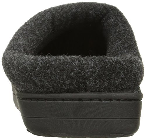 Binding : Apparel Product Description High density memory foam footbed. Durable skid-resistant indoor/outdoor sole. Accent stitch detail. Content: Upper: 100% Polyester, 100% Polyester lining. Insole: 60% Polyester, 23% Acrylic, 7% Rayon, 3% Wool, 7% Other fibers. Outsole: TPR and fabric. Machine wash, cold, gentle cycle. Lay flat to dry. 0