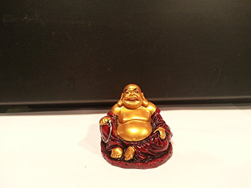 Feng Shui Buddha Gold Color Resin Happy Buddha Statue, Laughing Buddha Statue