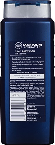 -. Binding : Health and Beauty -. Brand : Nivea Men -. EAN : 0072140015336 -. Feature : 16.9 Ounce / Moisturizing formula / Gives you incredibly soft skin while cleansing very mildly / Leaves skin feeling clean and comfortable -. Label : Nivea for Men -. Manufacturer : Nivea for Men -. NumberOfItems : 1 -. PackageQuantity : 1 -. ProductGroup : Pantry -. ProductTypeName : BEAUTY -. Publisher : Nivea for Men -. ReleaseDate : 2015-04-24 -. Studio : Nivea for Men -. Title : NIVEA Men Maximum Hydration 3-in-1 Body Wash, 16.9 Ounce -. UPC : 072140015336