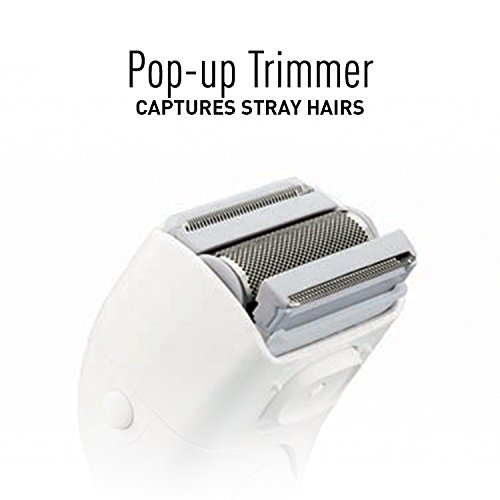 Womens shaver closely and safely trims bikini area and removes unwanted longer stray hairs with pop-up trimmer.