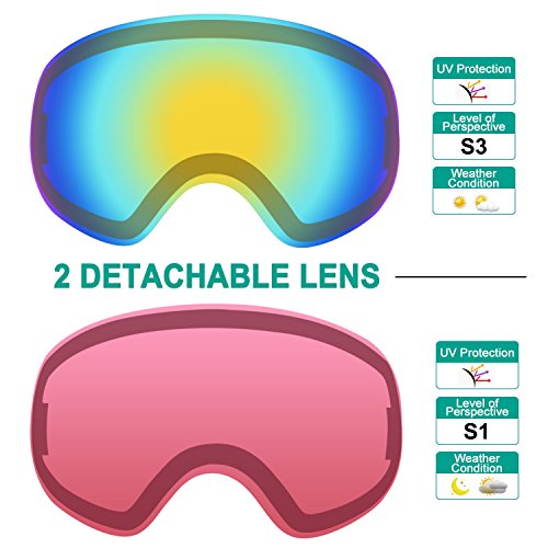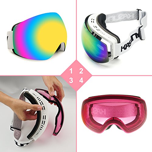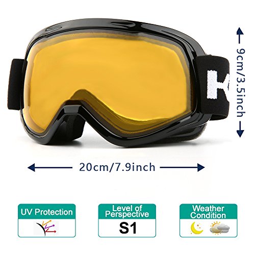 Studio : Kasliny Publisher : Kasliny Product Description iGopeaks Skate Ski Goggles are specially designed for adults and Youth, especially for glasses wearers. You can wear your glasses and goggles at one time. The goggles lens are anti-fog and of UV protection, offering you a clear, great visibility. The two-way channel ventilation design and soft sponge will give you a safer and more comfortable wearing in sunny, cloudy and snowy days. The goggles will definitely make your skiing trip more enjoyable! Specifications: - Lens Material: PC UV - Frame Material: TPU - 100% UV400 protection VLT (Visible Light Transmission) Reference Scope: VLT 0-10% - For sunny days VLT 10-25% - For partially clouded to sunny days VLT 25-60% - For cloudy days and dusk VLT 60-90% - For night and heavily clouded days Notice: 1. In order not to damage the anti-fog layer when cleaning your goggles, carefully clean the lens with a soft tissue. 2. Store the goggles at a dry well ventilated place after use to dispel sweat humidity. 3. Avoid scrubbing the lens too frequently as it may reduce the performance of the anti-fog coating. 4. If possible, try it on while wearing your ski helmet to ensure the latter doesn't block your venting. Other tips to avoid fogging include not overdressing (this will cause your face and head to sweat more) and keeping your goggles on as much as possible during your ski day. Moving goggles to your forehead will cause the heat and moisture emanating there to fog up. 0