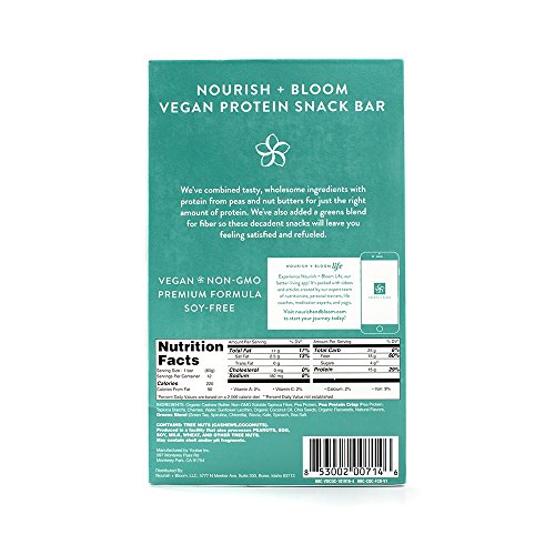 Nourish and Bloom Vegan Protein Snack Bar, Chocolate Almond Biscotti, 12 Count