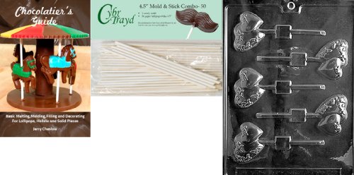 Cybrtrayd 'Small Double Heart Lolly' Valentine Chocolate Candy Mold with 50 4.5-Inch Lollipop Sticks and Chocolatier's Guide