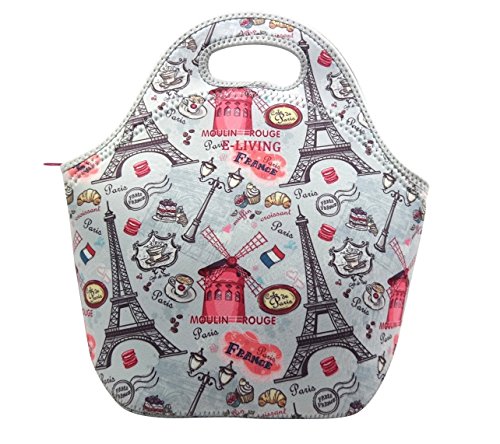 E-Living Neoprene Lunch Tote Bag - 5 Designs (I Love USA / Red London / Paris / White Dots / Vintage Roses) (Paris )