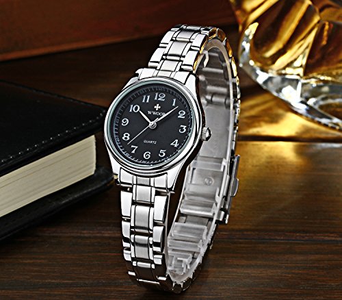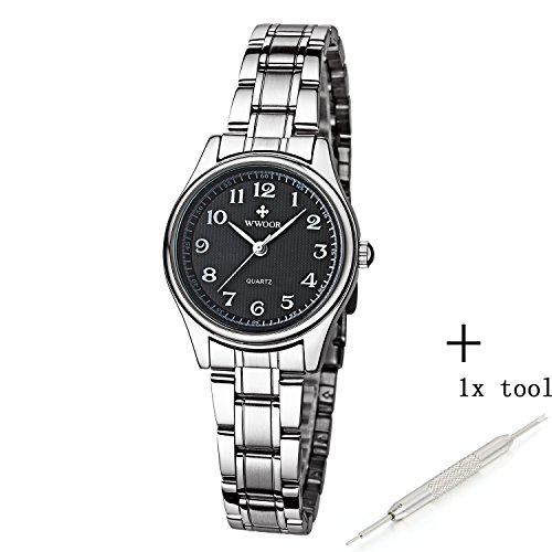 -. Feature : Japanese quartz movement with analog display with Stainless steel / Water resistant up to 3 ATM (Suitable for everyday use. Splash/rain resistant. NOT suitable for diving, swimming, snorkeling, water-related work) / Easy to check the time, more convenient.Good for climbing and outdoor active, more pratical. / It is an Amazing gift for women and your girlfriend. / Band length(cm): 8.27"(21cm) It is normal size female watch, the length can be adjusted by special remove link tool due to clasp type.
