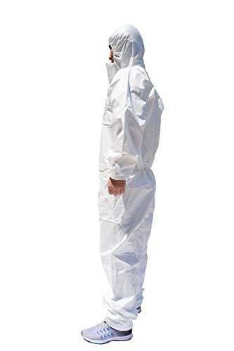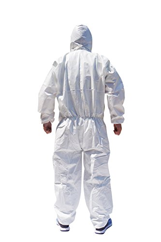 Raytex 30203 Microporous Disposable Coveralls Protective Breathable Hooded Suit with Elastic Cuffs, Ankles and Waist,Zip Front Opening, Serged Seams for Spray Paint Chemical Industrial(X-Large,White)