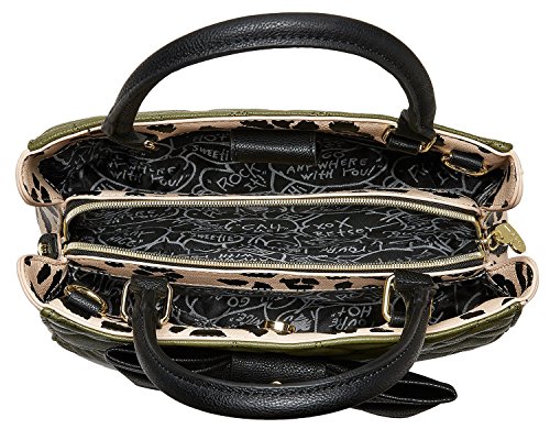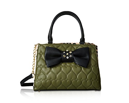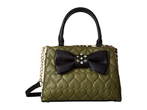 Carry everything you need in style this with this adorable 3 Compartment Bow Bowler bag from Betsey Johnson. Made of PVC Quilted leather, adorned with signature Betsey Johnson Bow. Double rolled handles with 5" drop and optional shoulder strap, Magnetic closure opens to fully lined interior with center pocket 2 back wall slip pockets and 1 zipper pocket, It Brightens up your outfit with a pop of personality.Feature