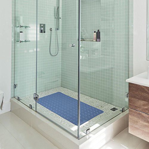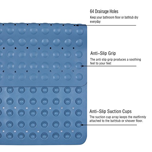Angelbubbles Bath Mat Rubber Non Slip Antibacterial 27.56 x 15.75inches (Blue)