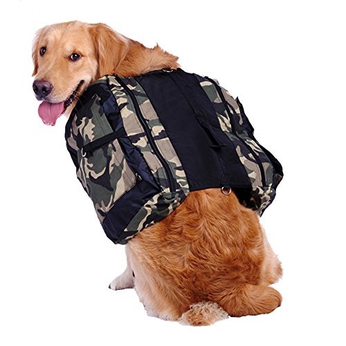 -. Title : Camouflage Pet Supplies Travel Bag for Medium Large Dogs, Outdoor Backpacks for Dogs to Wear Camping Gear Hiking Dog Harness Saddlebag Accessories