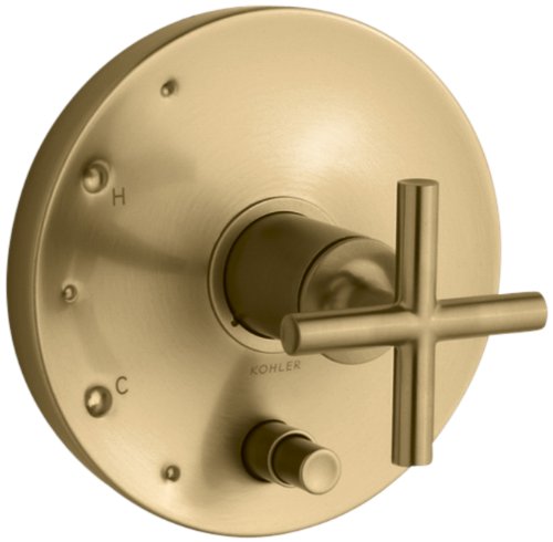 KOHLER K-T14501-3-BGD Purist Rite-Temp Pressure-Balancing Valve Trim with Cross Handles, Vibrant Moderne Brushed Gold
