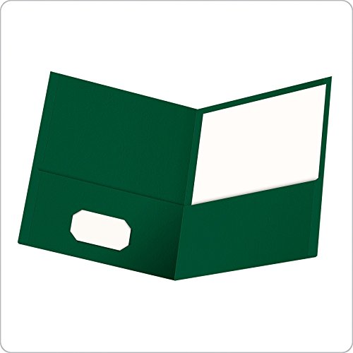 Oxford Twin Pocket Folders hold up to 100 sheets of letter-size paper (50 per pocket). Textured covers in five assorted colors (blue, red, yellow, orange, green) for color-coding. Keep contacts at hand with a die-cut business card holder on the inside. Paper made from 10% recycled fiber with 10% post consumer fiber. Letter size. 25 per box.