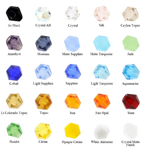 Mandala Crafts Wholesale Lot of 1000 Bicone Crystal Beads, 4mm, 25 Colors, Matte and Crystal Finish