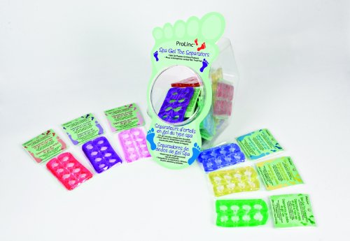 Studio : ProLinc Publisher : ProLinc Binding : Misc. Product Description These soft gel cushion any foot size for a perfectly smudge - free pedicure. They can be placed in the fridge to cool hot, tired feet. In addition, Gel Toe Separators don't asorb odors and can last up to 6 times longer than foam. Easy to clean, simply wash with mild soap and water. 0