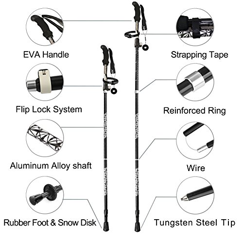 Foldable – We use 2 sections 100% Aviation Carbon Fiber 3 sections Aluminum to make the Strongest & Lightest Poles in the Outdoor Market.The unique folding design, 5 sections collapse to only about 13.8 inches , making the hiking poles fit in your backpack or your carry-on bag.