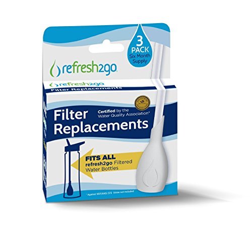 Filter Replacements, Fits ALL RefresH2Go Filtered Water Bottles. Certified by the Water Quality Association. (3 Pack - Six Month Supply).