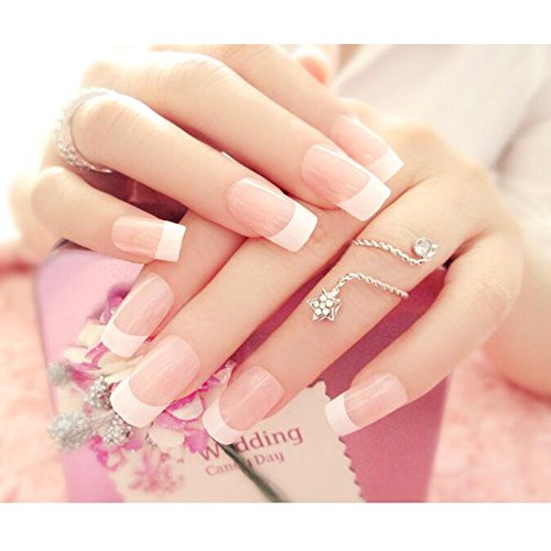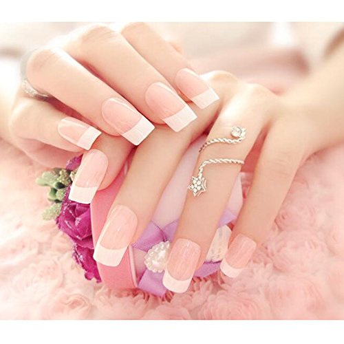 LuckySHD 24Pcs Fashion Style Bridal Wedding False Nail Full Design Nail Tips Pink Fake Nails Art Tips