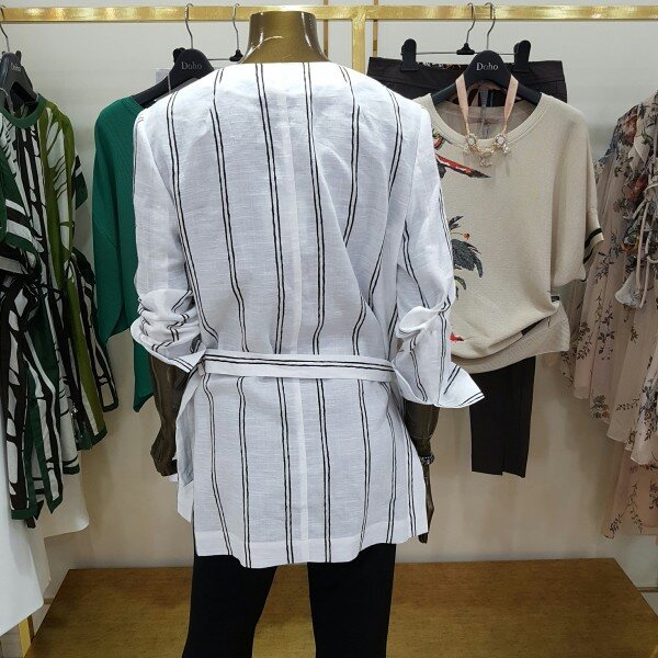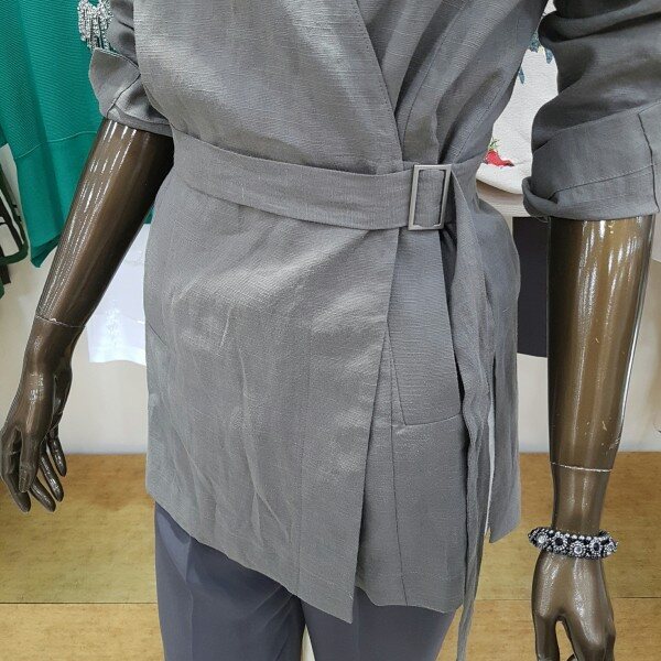 린넨 소재 느낌의 자켓으로 벨트는 탈부착이 가능하며셔츠형으로 걸쳐 입거나~~ 독특한 디테일이 특징인 유니크한 아이템 입니다