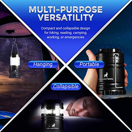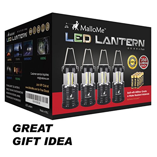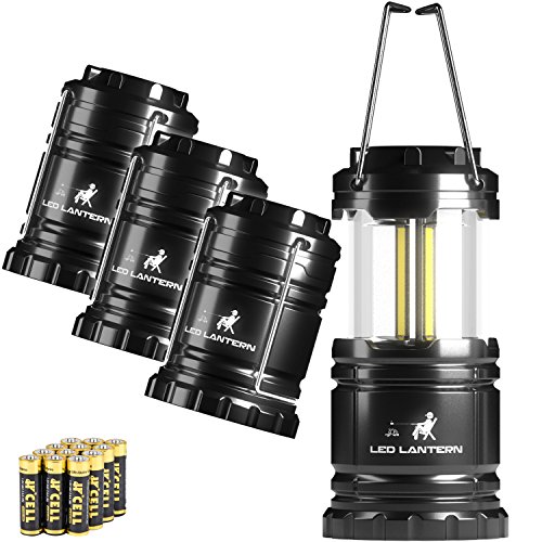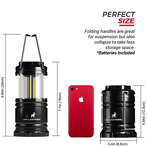 BRIGHTEST COLLAPSIBLE LANTERN! Latest technology Chip-On-Board LED technology illuminates larger areas with more light than the commonly found 30 LED lanterns. 350 Lumen LED Camping Lanterns - Highest Quality CE & ROHS Approved Military Grade ABS Material is the Best Camping Lantern Accessories Flashlight Survival Gear & Camping Equipment Gift Set that is built to last. DESIGNED FOR YOU - collapses into small bundle for easy control and storage [12 AA Batteries Included]