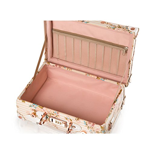 -. Brand : UNIWALKER -. Department : girls -. Feature : Retro 3 password lock(Not TSA lock): Easy to set or reset and will protect your suitcase. / Polyester lining: Pink P.R.Inting design with our LOGO. / Outside pu leather. Partial waterproof and easy to clean. You could only use stupe to wash the outside. Don't worry about that it will be dirty. / Using texture mapping technique,enhanced visual beauty. / Corner rust-proof rivets are imported from Taiwan, science scale mixture to build rose gold.Reinforced lage and improve the beauty -. PackageQuantity : 1 -. ProductGroup : Apparel -. ProductTypeName : LAGE -. Size : Small -. Title : 13 Inch Women Pu Leather Small Suitcase Floral Decorative Box with 2 Straps