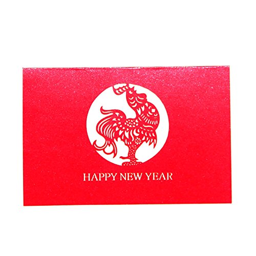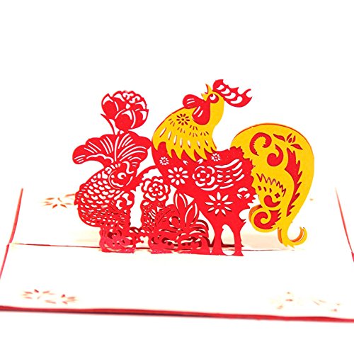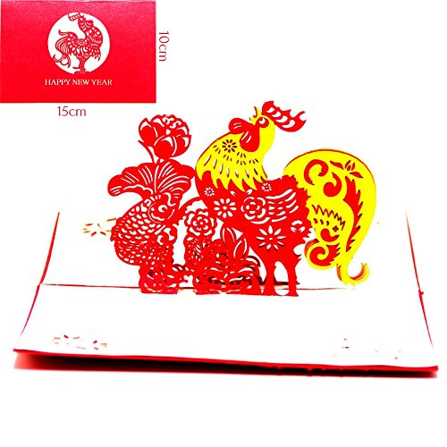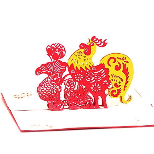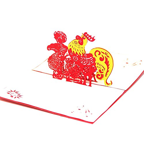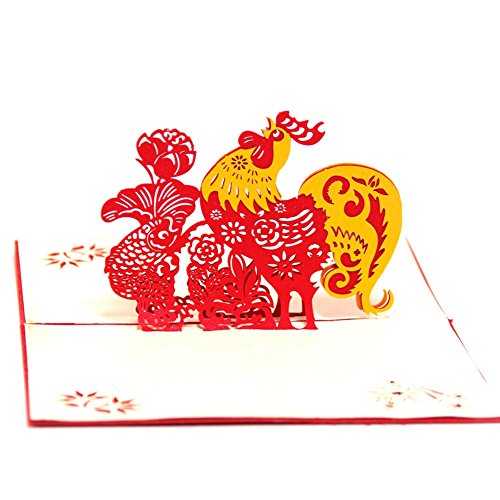 Paper Spiritz Rooster 3D Pop up Greeting Card Best Wishes Happy New Year of 2017 Thank You Mom Postcard with Envelope Laser Cut Mother's Day Birthday Post Card (Pack of 1)