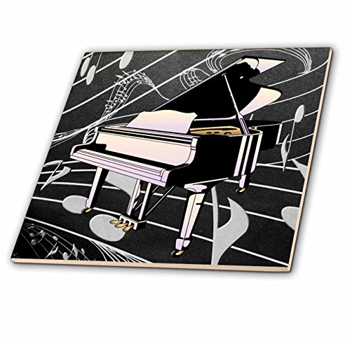 3dRose ct_39052_1 Art Deco Black and Pink Piano on Black Music Background Ceramic Tile, 4-Inch