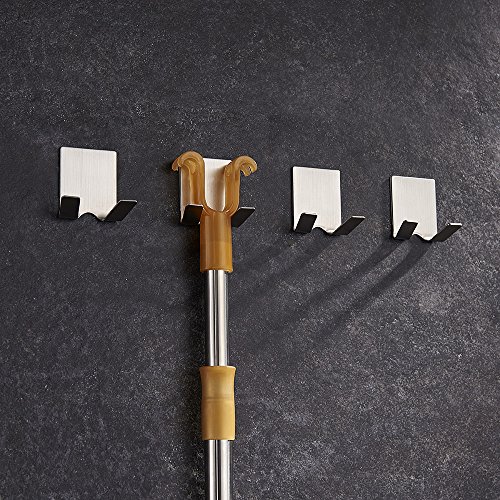 KES Bathroom Self Adhesive Towel and Robe Hook by 3M Adhesive, Brushed Stainless Steel, 8 Pieces, AH7202-2-P4