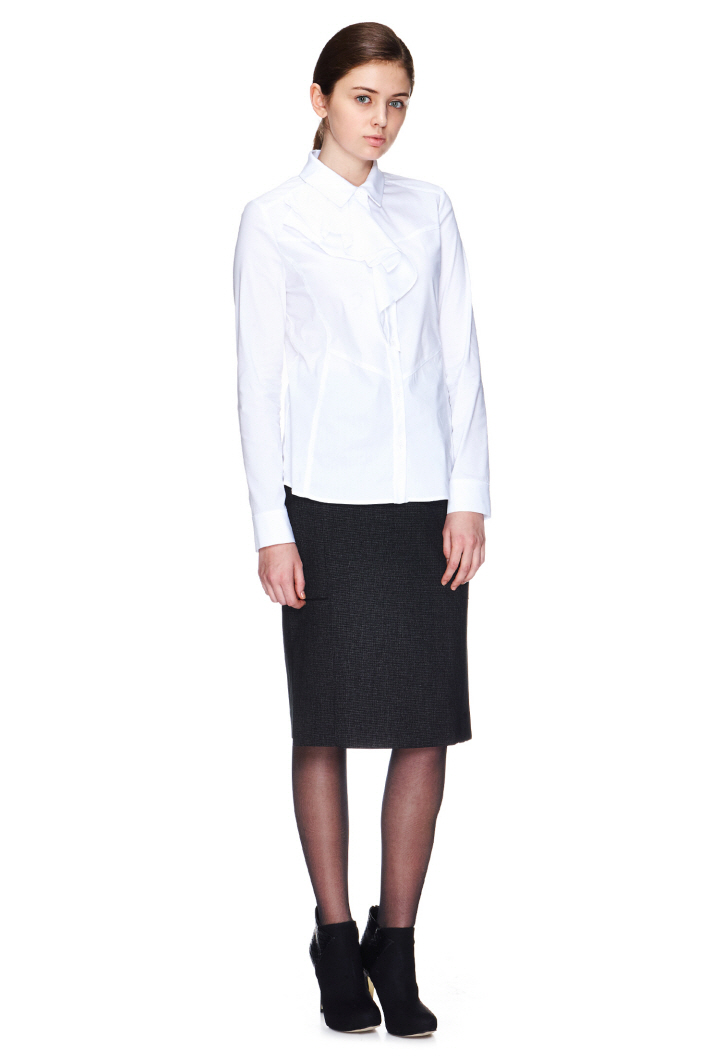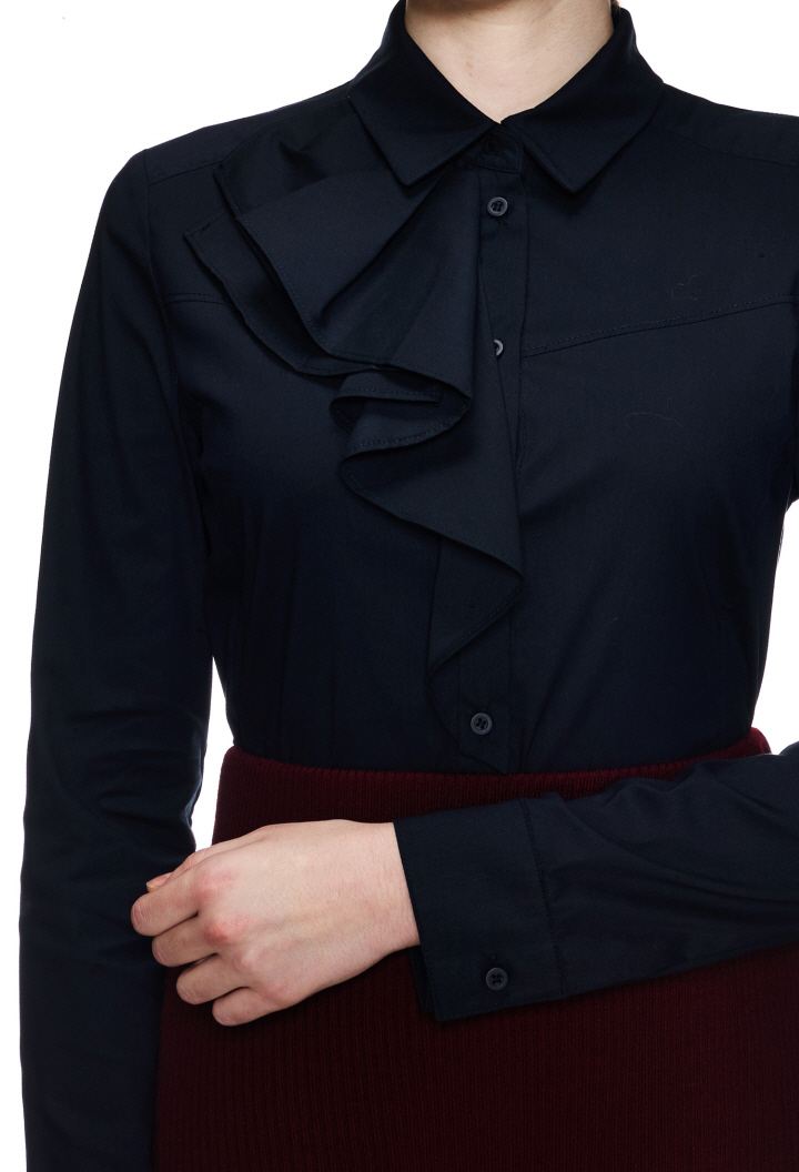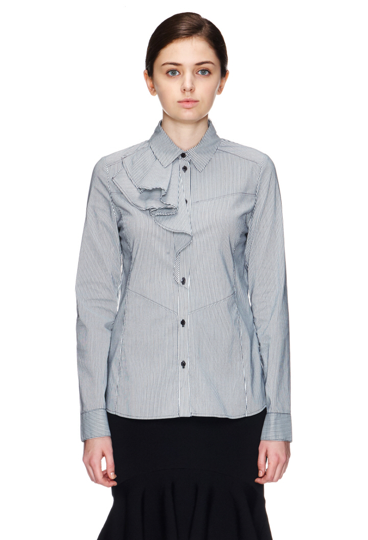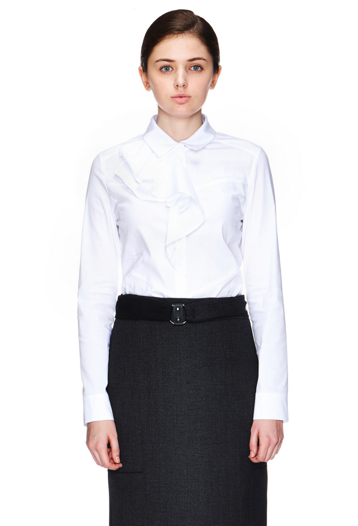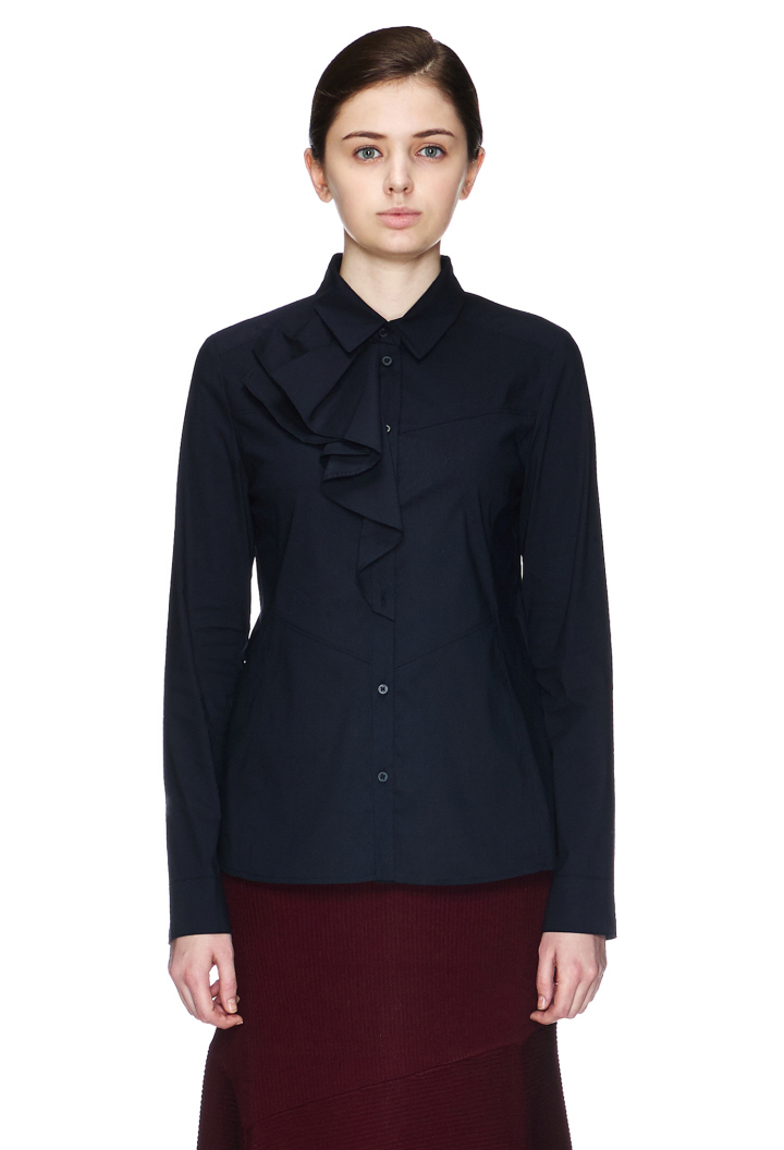 베이직한 셔츠 스타일에 전면 프릴장식이 페미닌한 무드를 연출합니다.